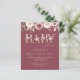 This sweet baby shower invitation features a top border of burgundy and blush pink watercolor flowers. Below, the words "baby in bloom" appear in gold letters adorned with burgundy and blush bouquets, with the words "in bloom" in elegant burgundy handwriting script below. Personalize the text with the name of the mom-to-be in burgundy script and the details in charcoal gray sans serif font on a burgundy background. A coordinating burgundy and blush floral pattern appears on the back of the card.
