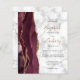 The left-hand edge of this elegant modern wedding invitation features a burgundy watercolor agate border trimmed with faux gold glitter. The customizable text combines gold colored handwriting script with black copperplate and italic fonts on a gray and white marble background. Add additional details on the back, along with a QR code to help your guests visit your wedding website.