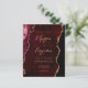 This elegant wedding invitation features a background image of burgundy watercolor agate trimmed with faux gold glitter. The customizable text combines gold-colored modern handwriting, copperplate and italic fonts. The reverse side features a coordinating burgundy and gold agate design.