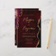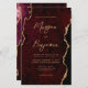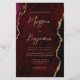 This elegant wedding invitation features a background image of burgundy watercolor agate trimmed with faux gold glitter. The customizable text combines gold-colored modern handwriting, copperplate and italic fonts. The reverse side features a coordinating burgundy and gold agate design.