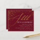 Budget Burgundy & Gold Confetti Surprise Party Invitations. Shhh... It's a surprise! Celebrate your surprise birthday party with these stylish invitations featuring faux gold foil confetti and script against a burgundy red background. Your details appear in elegant serif typography.