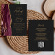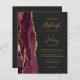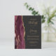 Save the cost of printing and mailing separate RSVP cards with this elegant modern all-in-one budget wedding invitation. The left-hand edge features a burgundy watercolor agate border trimmed with gold faux glitter. The customizable text combines gold-colored handwriting, copperplate and italic fonts on a slate black background. The reverse side provides space for wedding details on a solid slate black background, along with a QR code guests can scan to visit your website and RSVP. NOTE: Envelopes are not automatically included with these budget invitations, so please remember to choose the "blank white envelopes" option!