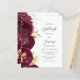 The left-hand edge of this elegant wedding invitation features a burgundy floral border trimmed with gold faux foil and glitter leaves. The customizable text combines charcoal gray vintage-inspired script and sans serif fonts on a white background. The reverse side features a matching floral design.