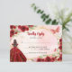 Modern Burgundy Maroon Red Gold Glitter Sparkle Floral Rose Butterfly Princess Tiara Crown Quinceañera Birthday QR Code RSVP Response Card