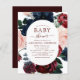 Budget Romantic Burgundy, White and Navy Blue Modern and Elegant Floral and Eucalyptus Watercolor Spring Baby Shower Invitations - includes beautiful and elegant script typography with modern botanical flowers and greenery for the special Mother to Be celebration.