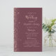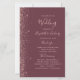 This elegant, modern wedding program features a dark burgundy background edged with rose gold faux glitter. The text appears in elegant rose pink handwriting and copperplate fonts.