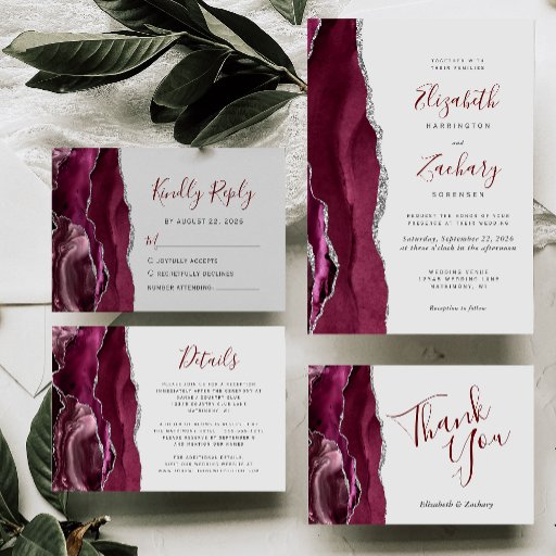 Budget Burgundy Silver Agate Gray Wedding Invite