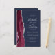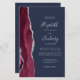 The left-hand edge of this elegant modern wedding invitation features a burgundy watercolor agate border trimmed with silver faux glitter. The customizable text combines silver gray handwriting, copperplate and italic fonts on a navy blue background. Add additional details on the back, along with a QR code to help your guests visit your wedding website.