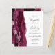 The left-hand edge of this elegant modern wedding invitation features a burgundy watercolor agate border trimmed with silver faux glitter. The customizable text combines charcoal gray handwriting, copperplate and italic fonts on a white background. The reverse side features a matching burgundy and silver agate design.