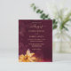 A bright yellow sunflower is nestled in modern botanical line drawings to create a modern and elegant floral border along the left side of this burgundy wedding invitation. Gold confetti is sprinkled across the red burgundy background to create a rustic glam vibe.