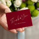 Simple trendy modern dark red wine burgundy budget affordable wedding thank you small note card featuring a chic handwriting calligraphy script with a little heart. +++++++++++ Personalize it with your text and signature! ++++++++++ Please note that the background color can be changed to match your wedding color scheme. If comfortable doing it, you can change it after selecting CUSTOMIZE IT option. +++++++++ If you need help, please message the designer!