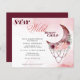Affordable Low Budget Birthday Invitation | Beautiful pink and maroon crescent moon mandala with draped beads surrounded by pink and deep crimson rose with sage foliage accents highlighted by a pale blush pink watercolor wash background - the back is a coordinating color easy to customize template - JustCards™. This is Also part of a complete wedding stationery suite, For question or assistance please contact designer indy.designer@yahoo.com.