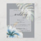 Affordable Rustic Tropical Watercolor Hibiscus and Foliage Wedding Invitation | NEW! Affordable Lightweight Wedding Invitations - a single dusty blue tropical hibiscus flower and one split leaf philodendron leaf adorn opposite diagonal corners both, edged in sparkling gold all set on a medium gray background with a sheer white overlay for the text to be easily read and yet allow the design to show through - beautiful handwritten calligraphy - easy to customize template - original design by ©WhimsicalArtwork™ for theBarefootBride ™. This is part of our Watercolor Tropical Hibiscus wedding collection as well as Baby Shower, Birthday and Christening Invitations. For question or assistance please contact designer indy.designer@yahoo.com.