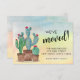 Tell family and friends that you have moved to your new home in the Southwest, or any desert location. This small moving announcement card features watercolor cacti and a colorful background with stylish typography. Easily customizable.