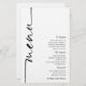 Size 5.5” x 8.5” at a budget price, Budget Calligraphy Modern Wedding Menu. This modern design has Menu in elegant set script running up the left hand side and the rest of the text is aligned to the right which you can easily personalise as well as your names and wedding date on the back. Text and background colors on either side can be changed to any of your choice via the customise further option.