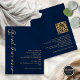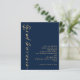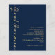 Budget Calligraphy QR Code Navy Blue and Gold Wedding Evening Party Guests. A budget priced smaller 4.5 x 5.6” alternative on 110gsm semi gloss similar in thickness to a postcard. Add your QR code to your wedding website on the back makes this a convenient option for your guests to RSVP and see all the details without the need for separate RSVP and details cards. Stylish set script is rotated to the left hand side, with all the details stylishly to the right with lots of white space for a contemporary feel. Easily personalise with your details. And change the color of text and background if you wish via the edit further option.