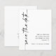 Minimalist Calligraphy QR Code Black and White Wedding Save the Date. A budget priced smaller 4.5 x 5.6” alternative on 110gsm semi gloss similar in thickness to a postcard. Optional QR code to your wedding website on the back which will be automatically generated when you change the sample url to your own website url or delete sample code if not required. Stylish set calligraphy is rotated to the left hand side, with all the details stylishly to the right with lots of white space for a contemporary feel. Easily personalise with your details. And change the color of text and background if you wish via the edit further option.