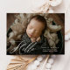 Budget Simple Calligraphy Script Hello Photo Baby Birth Announcement features your baby's full bleed photo on the front, along with trendy white calligraphy overlay. The back includes another photo and additional text.