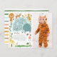 Budget, cute and fun kid's safari animals theme birthday party invitation featuring an illustration of safari animals and a custom photo. The Party Animal theme is inspired by safari and wild animals and features a fun mix of animals that are sure to be a hit at any birthday party. There is a lion, a monkey, a tiger, an elephant, a snake, a flamingo, a giraffe, a crocodile, a turtle, and three little birds framed with grass and greenery. There is a big blue speech bubble with "Calling all party animals!" in fun hand-lettered capitals. Your child's name appears below with their upcoming birthday and event details. On the right-hand side of the card, there is your custom photo! Cards reverse to a background of colorful stripes. Perfect for a boy's birthday party. As part of the budget selection on Zazzle, this sheet isn't a standard invite size or paper quality. If you want this design on an invitation card you can find it in our store or use the Zazzle Make Machine to transfer it onto the product of your choice. Feel free to message me with any questions, I'll be happy to help. Check out the collection link below for matching items!