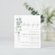 A value for money BUDGET alternative on a smaller size 4.5 x 5.6” semi-gloss 110lbs weight, which is of similar thickness to a postcard (however is not suitable to use as a postcard.). PLEASE NOTE there is ONE invite per sheet. Budget Celebration Of Life Eucalyptus Luncheon Invitation. Modern botanical style, with watercolor foliage along the left. A set handwritten script for Celebration of Life and the rest of the text you can easily personalise.