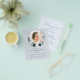 This is an elegant and modern funeral invitation card printed on a budget friendly flyer to celebrate the life of your loved one. The design features a beautiful calligraphy font and delicate floral wreath with blue, green and silvery botanicals that frame a photo. This invitation can easily be personalized with your own photo and text to create a special tribute for your loved one's funeral, memorial or celebration of life using the template provided.