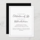 A minimalist modern celebration of life invitation.