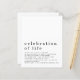 A value for money BUDGET alternative on a smaller size 4.5 x 5.6” semi-gloss 110lbs weight, which is of similar thickness to a postcard (however is not suitable to use as a postcard.). PLEASE NOTE there is ONE invite per sheet. Budget Celebration of Life Luncheon Invitation. A simple design with lots of white space for a contemporary modern touch. The header is large in stylish lowercase with the details beneath. Easily personalise the text to your own. You can also change the text and background colors if you wish via the customise further option in this fully customisable design.