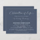 A value for money BUDGET alternative on a smaller size 4.5 x 5.6” semi-gloss 110lbs weight, which is of similar thickness to a postcard (however is not suitable to use as a postcard.). PLEASE NOTE there is ONE invite per sheet. Budget Budget Celebration Of Life Navy Blue Luncheon Invitation. A stylish set calligraphy style script for Celebration of Life and In Loving Memory and the rest of the text you can easily personalise, on a background of dusty navy blue.