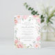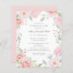 Budget Invitation Style. Elegant celebration of a life invitation features two pink rose floral arrangements decorating a gold frame. The deceased person's name is written in a traditional script text. All of the text can be easily edited to create a personal remembrance.