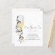 Budget Champagne Script New Years Eve Invite. A budget price SMALLER 4.5” x 5.6” alternative. Available in a SEMI GLOSS 110 lb CARD STOCK which is the default option (recommended for invitations), OR a SATIN FINISH 80 lb VERY THIN PAPER STOCK . Envelopes are an optional extra and are slightly larger than the card size. Simple elegance with a champagne glass and gold and black streamers to the left, and the main header in a set handwriting style script. Easily personalise the rest of the text to your own details.