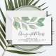 This budget moving announcement small card is decorated with minimalist watercolor foliage in shades of green.