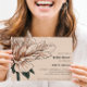 Stunning and Elegant Bridal shower invitation, featuring a magnificent Dahlia Flower in bloom in watercolor palette of exquisite ivory nuances and forest green leaves on left of the card.