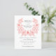 Your names and surnames are encircled by a rustic ELEGANT bouquet design of magnolia flowers in outlined CORAL PINK color on white background.