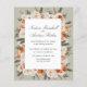 This design features an elegant floral wreath of flowers and leaves in watercolor palette of blush pink, ivory, cream sage and moss green with your wedding details displayed in an elegant combination of cursive and capital letter over a white frame. Perfect for formal celebration, or elegant wedding with romantic vibes.