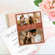 Budget elegant modern script terracotta rust burnt orange boho desert 3 photo collage wedding save the date announcement personalized affordable low budget flyer. Chic minimalist design template feature three (3) couple photo collage and elegant cursive hand lettering typography script „Save the Date” text.