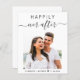 Budget-friendly wedding invitation featuring your photo and "Happily Ever After" in a mix of simple typography and a chic script with swashes.and your first names and wedding date joined together with a heart. On the reverse side, personalize your invitation in elegant typography. This budget semi-gloss paper is similar in weight to photo paper. A larger 5x7 traditional card stock version is also available (message us for the link).