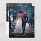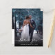 Budget Elegant Modern Calligraphy Photo Wedding Thank You cheap thin card. Stylish wedding thank you template featuring a full vertical photo on the front "Thank You" text overlay in a handwritten swash tail font script in white on the picture. Easy to add your name and thank you message. If you prefer to handwrite your note, just delete the sample text to make more space. If You need help, please contact designer!
