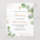 Budget christening eucalyptus script invitation