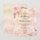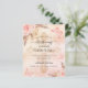 A rose gold, blush pink rustic faux metallic looking background. Decorated with rose gold and pink florals, roses, pampas grass, butterflies. A large golden cross in the bacground as a watermark. Personalize and add a name and the details.