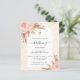 An arch frame and rose gold marble print as background. Decorated with rose gold and pink florals, roses and pampas grass. Personalize and add a name and details.