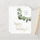 The template allows you to replace the existing logo with your own branding, giving the cards a personalized touch. Customize the message and company name sign-off to convey your sincere thanks and well wishes. The design features a modern wreath illustration in gold, green, and white, symbolizing the holiday spirit. The words "Happy Holidays" in a gold color hue on a white background add a touch of elegance and sophistication.