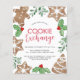 This budget Christmas cookie exchange party invitation is decorated with watercolor cookies, holly, mistletoe, berries, and stylish script typography.