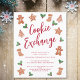 This Budget Christmas Cookie Exchange Party Invitation is decorated with watercolor cookies, holly, berries, and stylish script typography with a pattern on the back.