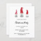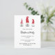 White background, decorated with 3 Scandinavian style gnomes in red, white and gray. A party invitation perfect for a Christmas party with friends, family or coworkers. Personalize and add your party details. Black letters.