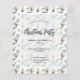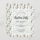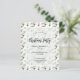 White background decorated with brown cones and pine tree branches. With the text: Christmas Party written with modern and trendy large hand lettered style script. Personalize and add your party details.