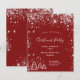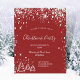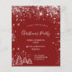 Classic red background, with faux silver glitter dust and white winter Christmas trees as decor. With the text: Christmas Party written with modern and trendy large hand lettered style script. Personalize and add your party information.