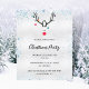 A cute, funny, modern, minimalist and abstract reindeer head. A faux silver metallic looking background and faux blue glitter dust. A party invitation perfect for a Christmas party with friends, family or coworkers. Personalize and add your party details. Black letters.