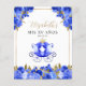 Floral Royal Blue Gold Cinderella Princess Gown Dress Gold Glitter Sparkle 15th Birthday Royal Quinceanera Invitation