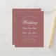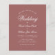 A simple, minimalist budget wedding invitation. It has only white text on cinnamon rose background. The word Wedding and the names are written in an elegant calligraphic script.