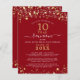 A budget-friendly modern and elegant class reunion invitation (sample shows 10 year) for any year printed on 4.5x5.6-inch lightweight paper instead of cardstock featuring gold stars and lights, elegant handwritten script typography and a custom color background (shown in red) you can change to your school color or party theme color. All text is editable to make your own. Ideal for conservative budgets and/or hand-delivering to guests. ASSISTANCE: For help with design modification or personalization, color change, resizing, transferring the design to another product or you would like coordinating items, contact the designer BEFORE ORDERING via the Zazzle Chat MESSAGE tab below or email makeitaboutyoustore@gmail.com.